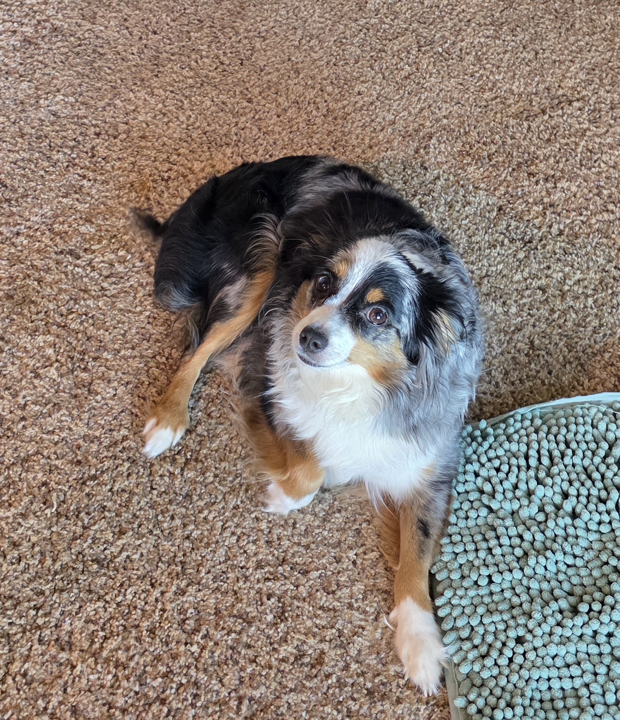 Beautiful blue merle with 1 blue eye. Mabel is not registered but she is still such a sweet addition to our crazy family.